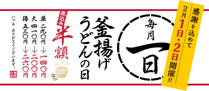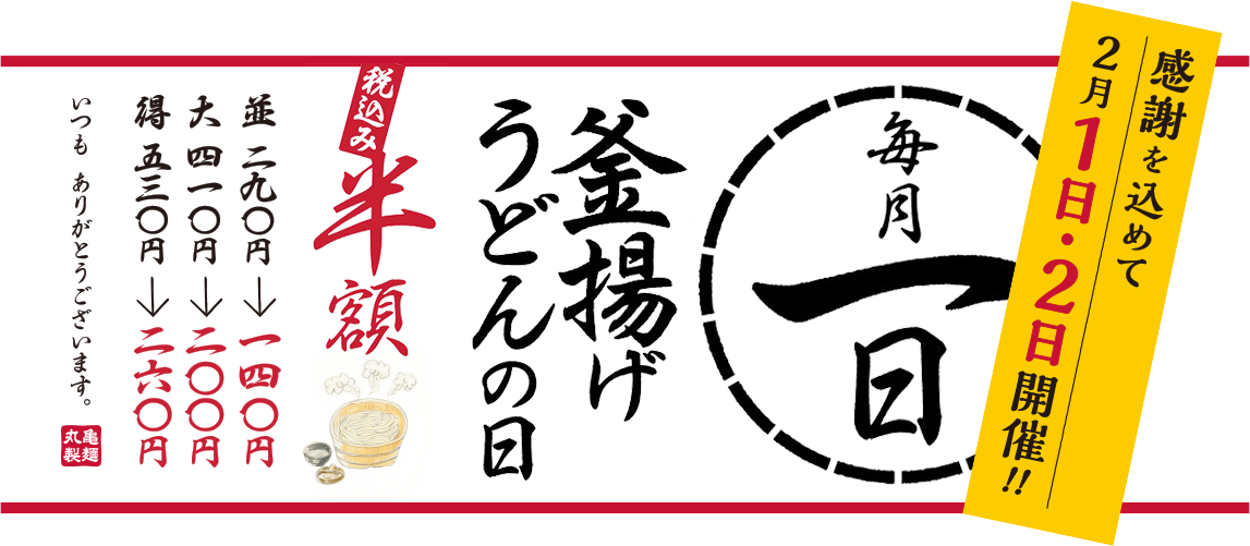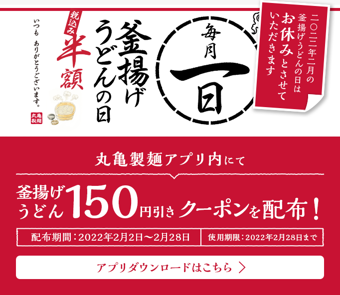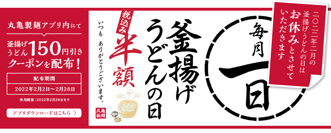 全国の丸亀製麺店舗にて販売された「釜揚げうどん」1杯に
